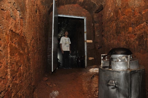 Xu Wenyi stands in his cave house in Xiangtan County, central China's Hunan Province, June 10, 2015. Xu Wenyi, 57 years old, digged a cave for living on a hill in Xiangtan County after divorce. Measured three to four meters in width and about 30 meters in depth, the cave, which he called the "Xiyan Cave", cost him six years for digging and now he has lived in it himself for 11 years. (Xinhua/Long Hongtao)