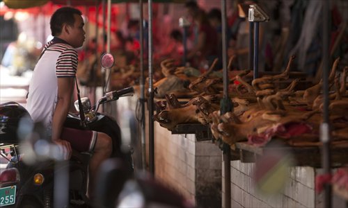 A man passes by a dog meat market in Yulin, Guangxi Zhuang Autonomous Region on Wednesday, as the local dog meat festival nears. Photo: CFP