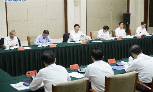 Chinese President Xi Jinping (rear, 3rd L) attends a Communist Party of China symposium on poverty relief and economic and social development in the 2016-2020 period in Guiyang, capital of southwest China's Guizhou Province, June 19, 2015. Photo: Xinhua
