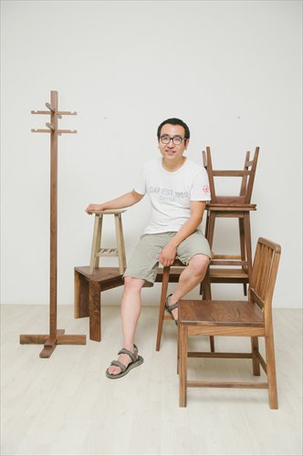 Zhang Yan'ge poses with his furniture. Photo: Li Hao/GT