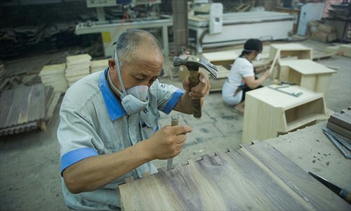 A carpenter works at the IIINSITU Studio in Beijing. Photo: Li Hao/GT