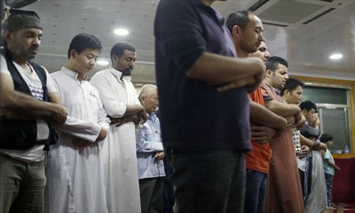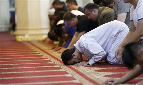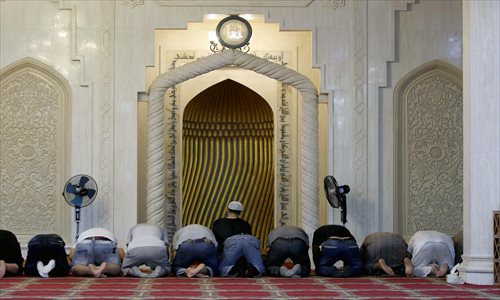 Prayers in Yiwu's mosque one afternoon during Ramadan. Photo: Yang Hui/GT