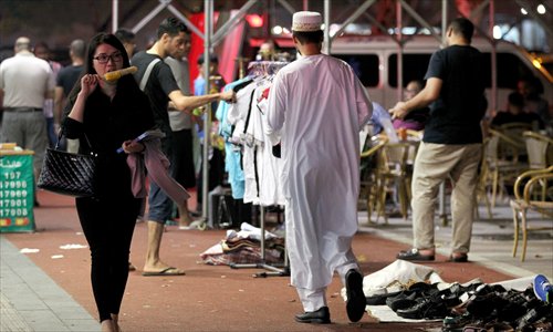 Arabs wearing white robes are a common sight at Yiwu's night market. Photo: Yang Hui/GT