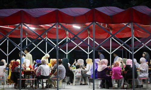 Chinese and Arab Muslims gather together to break their fast during Ramadan in Yiwu. Photo: Yang Hui/GT