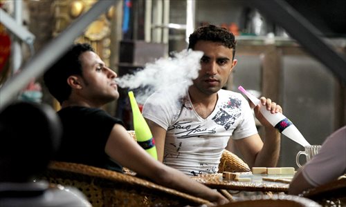 Two Arab men smoke hookahs at a night market in Yiwu. Photo: Yang Hui/GT