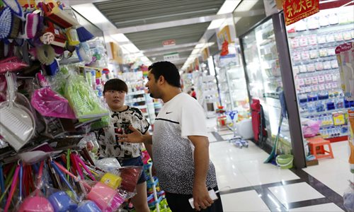 Businessmen from the Middle East stroll in Yiwu's wholesale market, seeking products to ship back home. Photo: Yang Hui/GT