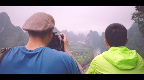 At the director's cue, I reach up to grab a jagged cleft of limestone as I climb Xianren, a 200-meter peak in Yangshuo, in southwest China's Guangxi region. A 10-person film crew crowds together beneath me on a vertiginous palisade directly above the Lijiang River for the final scene.