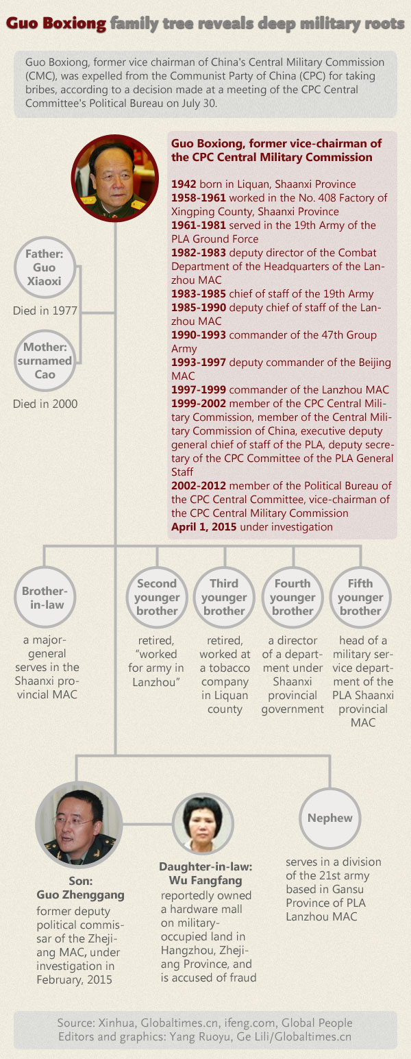 Guo Boxiong family tree reveals deep military roots