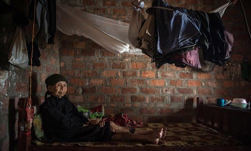 91-year-old Huang Youliang, who was a comfort woman in 1942, rests in bed in her home in Lingshui county, Hainan Province in 2014. Photo: CFP