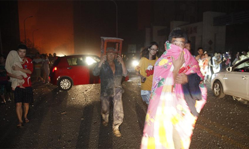 Smoke and fire are seen after an explosion in the Binhai New Area in north China's Tianjin Municipality on Aug. 13, 2015. An explosion rocked the Binhai New Area in north China's Tianjin Municipality at around 11:30 p.m. Wednesday. The cause and casualties are not immediately known. Photo: Xinhua
