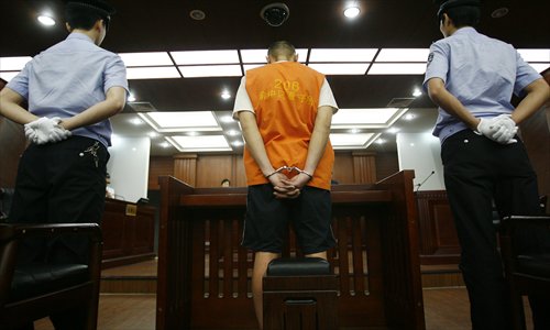 A man charged with illegal drug dealing waits for a verdict in a Chongqing court. Photo: CFP