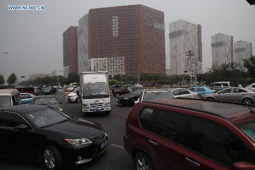 Cars carrying residents rush to leave after getting an evacuation order near the core area of explosion site in Tianjin, north China, Aug. 15, 2015. All people within 3-km radius are required to evacuate from Tianjin blasts site. (Xinhua/Shen Bohan)