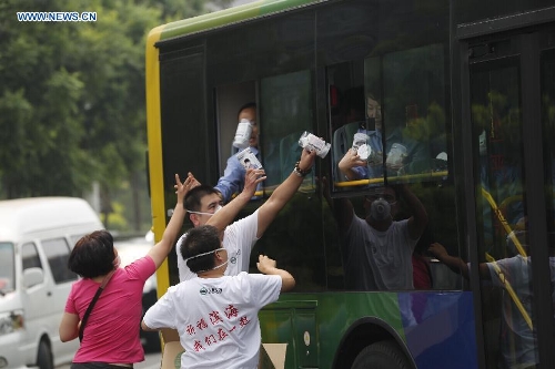Residents rush to leave after getting an evacuation order near the core area of explosion site in Tianjin, north China, Aug. 15, 2015. All people within 3-km radius are required to evacuate from Tianjin blasts site. (Xinhua/Zheng Huansong)