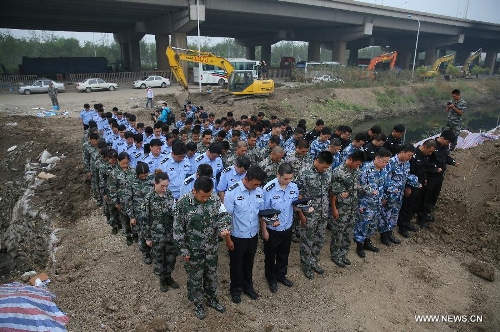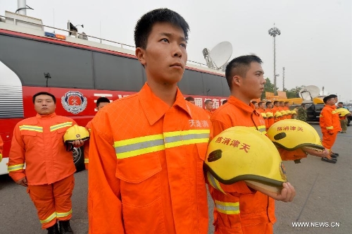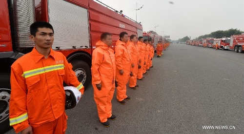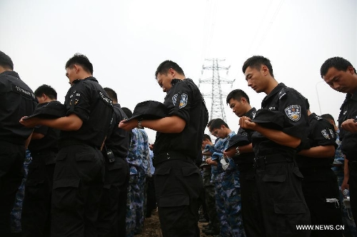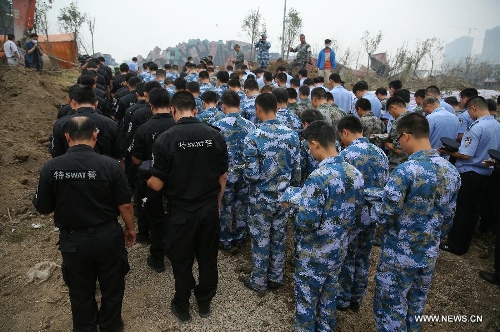 A mourning ceremony is held for the victims of the massive warehouse explosions at the blast site in Tianjin, north China, Aug. 18, 2015. The death toll from last week's massive blasts in Tianjin rose to 114. Photo: Xinhua
