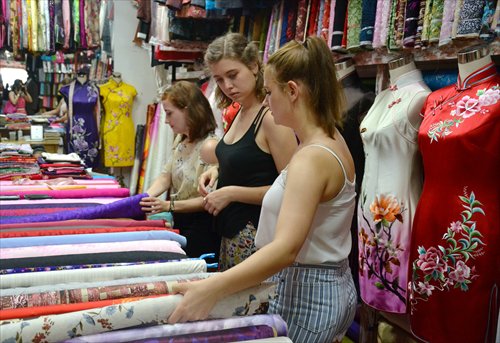 Students of the Chinese Traditional Costume program select materials for use in their coursework.
