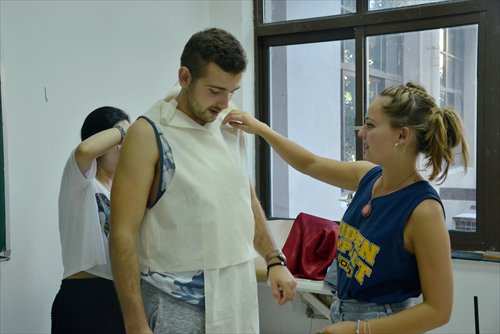 Program director He spoke highly of the participants' designing and making skills. "They were very creative and hardworking, and were good at learning from each other," she said. "During their month in Shanghai, they learned about traditional Chinese clothing culture, and experienced in person how that culture has influenced China's modern fashion trends. I hope the trip will benefit them in their future careers."