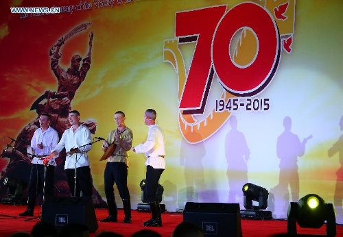 n officers and soldiers, who will participate in China's military parade on Sept. 3, perform a semichorus in a party at military parade training base in Beijing, capital of China, Aug. 25, 2015. Nearly 1,000 foreign troops from 17 countries will participate in China's military parade marking the 70th anniversary of the end of World War II on Sept. 3. (Xinhua/Zha Chunming)