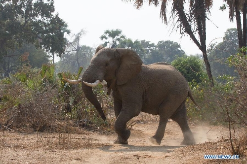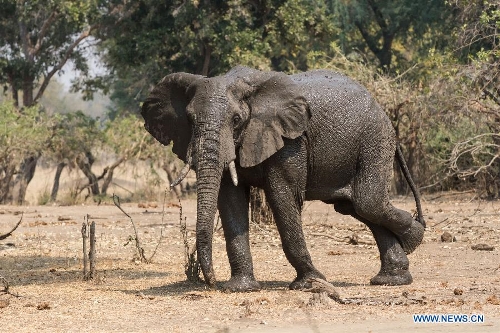 An elephant is seen in the Gonarezhou National Park, southeast Zimbabwe, on Sept. 2, 2015. Situated in southeastern Zimbabwe, the 5,000 sq km Gonarezhou National Park is the second largest national park in the country, and forms part of one of the world's largest conservation areas-the Greater Limpopo Transfrontier Park, with the Kruger National Park of South Africa to the south and the Limpopo National Park of Mozambique to the southeast. Gonarezhou, which is translated as "the place of elephants" in local Shona language, also has one of the world's highest elephant population densities-2 elephants per sq kilometers-with an estimated total elephant population of 11,000. (Xinhua/Xu Lingui)