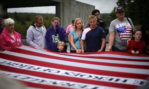 Visitors to the Flight 93 National Memorial in Shanksville, Pennsylvania, participate in a memorial service Thursday, as the nation marks the 14th anniversary of the September 11 attacks. Photo: AP