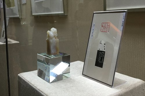 An engraved seal is on display at the Du Fu Thatched Cottage gallery in Chengdu on Saturday. Photo: Xu Liuliu/GT