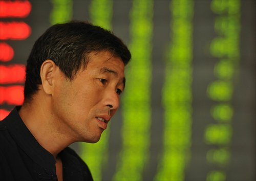 An investor checks stock information at a brokerage in Fuyang, East China's Anhui Province. Photo: CFP