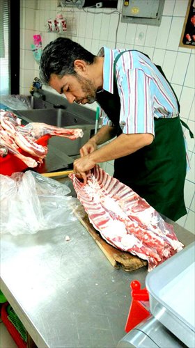 A chef slices mutton at a Muslim restaurant. Photo: CFP