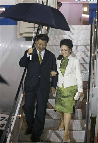 Chinese President Xi Jinping and his wife Peng Liyuan arrive in Port of Spain May 31, 2013 to start a state visit to Trinidad and Tobago. Photo: Xinhua