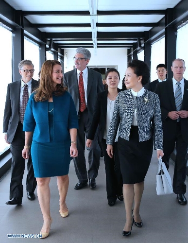 Peng Liyuan (R, Front), wife of Chinese President , visits the Fred Hutchinson Cancer Research Center in Seattle, the , Sept. 23, 2015. Photo: Xinhua