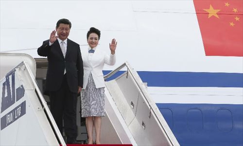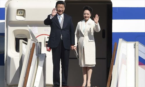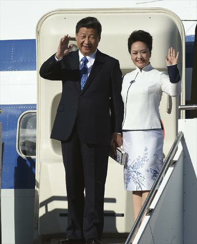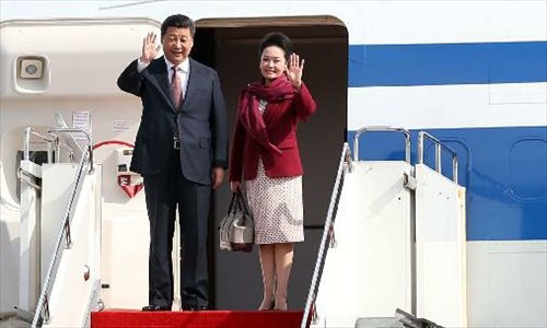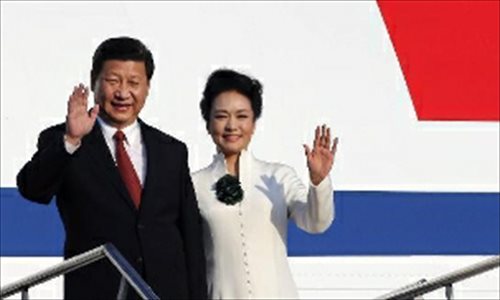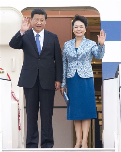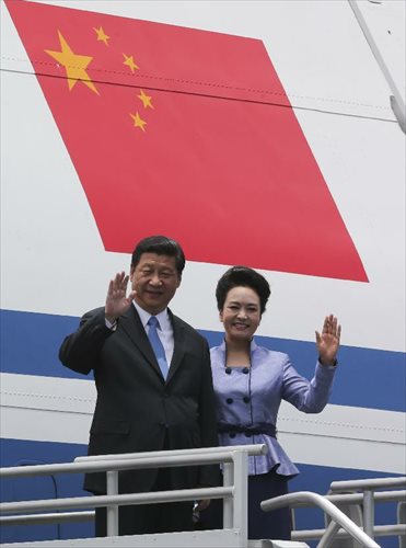 Chinese President Xi Jinping and his wife Peng Liyuan arrive in Mexico City June 4, 2013 for a three-day state visit to Mexico. Photo: Xinhua