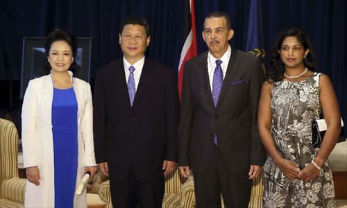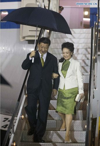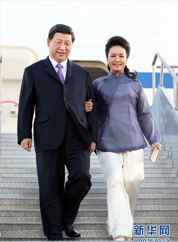 Chinese President Xi Jinping and his wife Peng Liyuan arrive in Port of Spain May 31, 2013 to start a state visit to Trinidad and Tobago. Photo: Xinhua