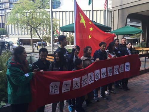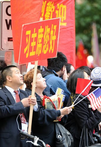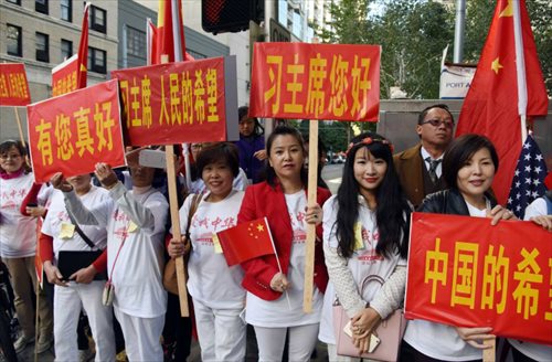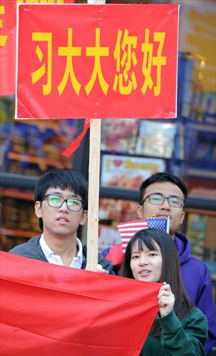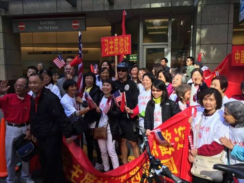 Overseas Chinese and students prepare to welcome Chinese president Xi Jinping in front of his hotel in Seattle on Sep 22. Photo: Mao Jianjun