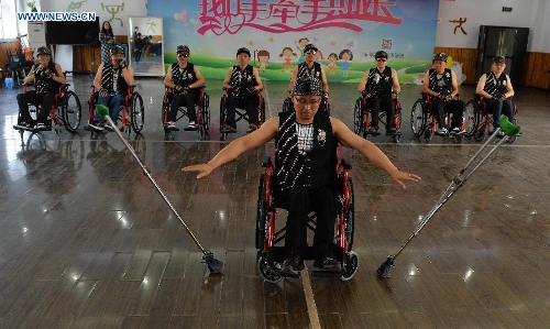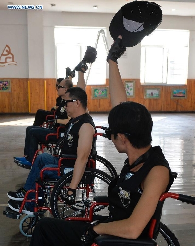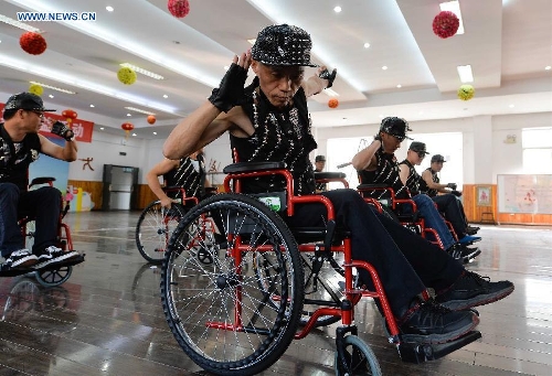 Members of a wheelchair dance group take part in a rehearsal in Changzhou, east China's Jiangsu Province, Oct. 12, 2015. With the help of local disabled persons federation, nine handicapped persons started a dancing group in July this year in Changning district of Changzhou. With the age that ranged from 30 to 51, they use wheelchairs as the steps, taking part in various performances. (Xinhua/Ji Chunpeng)