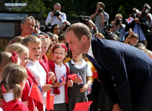 File photo taken on Sept. 8, 2014 shows Prince William (R), Duke of Cambridge, speaking with school students as he arrives to formally inaugurate the Dickson Poon University of Oxford China Centre Building in Oxford, Britain. Chinese President Xi Jinping will pay a state visit to Britain from Oct. 19 to 23. (Xinhua/Han Yan)