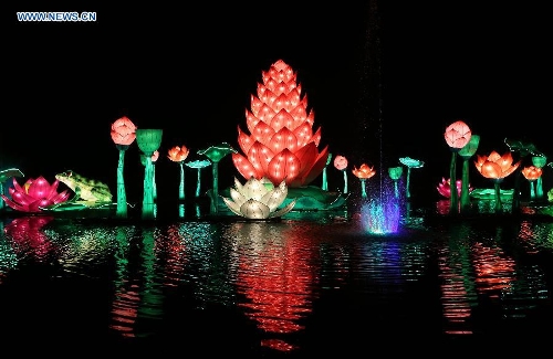 File photo taken on Nov. 12, 2014 shows flower-shaped lanterns at the illumination ceremony for the Chinese Festival of Light in Longleat of Wiltshire, Britain. Chinese President Xi Jinping will pay a state visit to Britain from Oct. 19 to 23. (Xinhua/Han Yan)