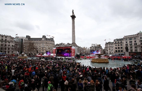 File photo taken on Feb. 22, 2015 shows People attending the Chinese lunar New Year celebration in Trafalgar Square in central London, Britain. Chinese President Xi Jinping will pay a state visit to Britain from Oct. 19 to 23. (Xinhua/Han Yan)