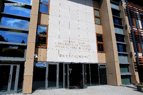 File photo taken on Sept. 8, 2014 shows the entrance of the China Center Building of the Dickson Poon University of Oxford, Britain. Chinese President Xi Jinping will pay a state visit to Britain from Oct. 19 to 23. (Xinhua/Han Yan)