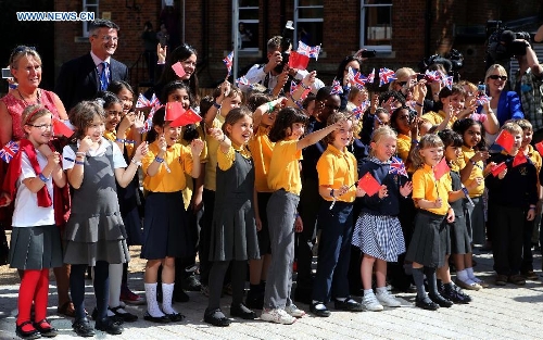File photo taken on Sept. 8, 2014 shows students waiting for the arrival of Prince William, Duke of Cambridge, before the inauguration of the Dickson Poon University of Oxford China Centre Building in Oxford, Britain. Chinese President Xi Jinping will pay a state visit to Britain from Oct. 19 to 23. (Xinhua/Han Yan)