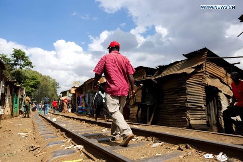 A man walks along a railway in Kibera slum, Nairobi, Kenya, on Oct. 16, 2015. The Kibera slum is the biggest slum in Africa and one of the biggest in the world. The Ministry of Devolution of Kenya and UN-Habitat are trying to help and improve this situation, but it is painfully slow. Photo: Xinhua