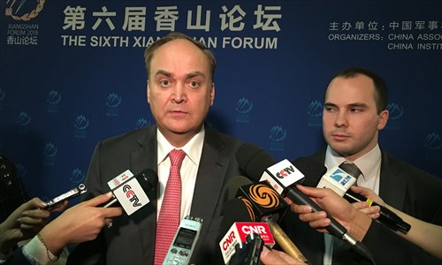 Russian Deputy Minister of Defense Anatoly Antonov speaks to reporters at the Sixth Xiangshan Forum on Saturday in Beijing. Photo: Liu Caiyu/GT