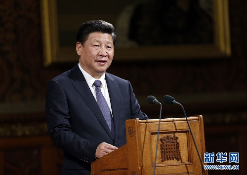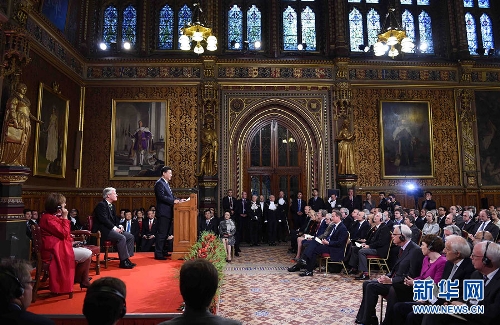 Chinese President Xi Jinping addresses both Houses of British Parliament in London, Britain, Oct. 20, 2015. (Xinhua/Zhang Duo)