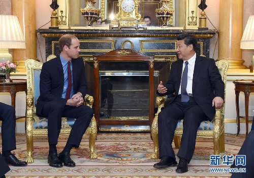 Chinese President Xi Jinping (R) meets with British Prince William in London, Britain, Oct. 20, 2015. (Xinhua/Zhang Duo)