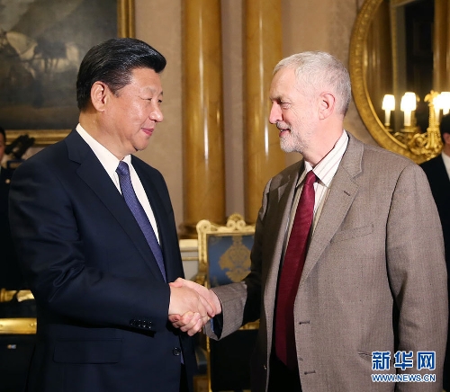 Chinese President Xi Jinping (L) meets with British Labor leader Jeremy Corbyn in London Oct. 20, 2015. (Xinhua/Yao Dawei)
