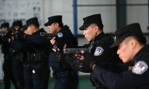 Members of the SWAT team engage in tactical training by getting into different formations. Photo: Cui Meng/GT
