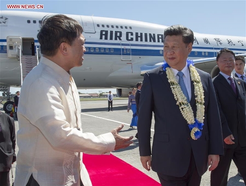 Chinese President Xi Jinping (R Front) arrives in Manila, Philippines, Nov. 17, 2015 for the 23rd APEC economic leaders' meeting. Photo: Xinhua