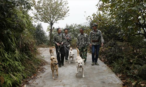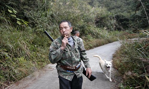 Around noon, with the air still damp from a morning downpour, five hunters gathered together in Tangyuankou village in Jiangshan city, Zhejiang Province. Each one of them carried a gun and two of them brought dogs to track their quarry.