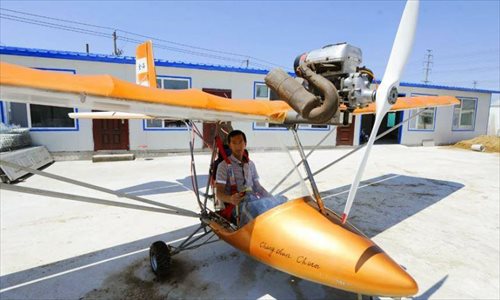 Yang Shijun from Jilin Province tests his homemade jet, which cost him about 100,000 yuan. The jet is five meters long, has a wingspan of 9.5 meters and weighs 110 kg.