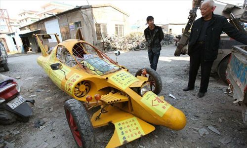 Wang Jian, from Jiangsu Province, stands by his replica Lamborghini.