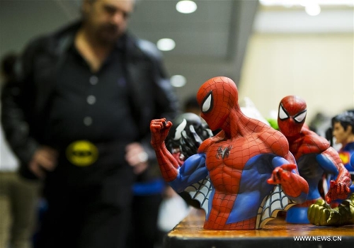 Toys of Spiderman are seen during the 2015 Toronto Comicon event in Toronto, Canada, Dec. 5, 2015. Focusing on anime, manga and cosplay, this annual event drew thousands of fans on Saturday. (Xinhua/Zou Zheng)