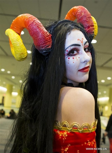 A cosplayer poses for photos during the 2015 Toronto Comicon event in Toronto, Canada, Dec. 5, 2015. Focusing on anime, manga and cosplay, this annual event drew thousands of fans on Saturday. (Xinhua/Zou Zheng)