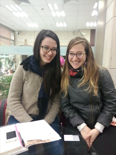We are studying Chinese here and we've been here for three months. Although sometimes we know it's not good, we just do as the Romans do. Behavior like running red lights, pushing people on the metro station in order to get on and bargaining with vendors is so common that we've grown used to it. We like Chinese food very much - it's delicious. And now we've got accustomed to eating a lot of stuff in one big dish together, which is unimaginable in our country.